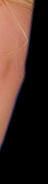 A girl is lying back, topless. Another girl is pulling down her shorts, exposing blue panties while her mouth is poised to kiss the skin.
